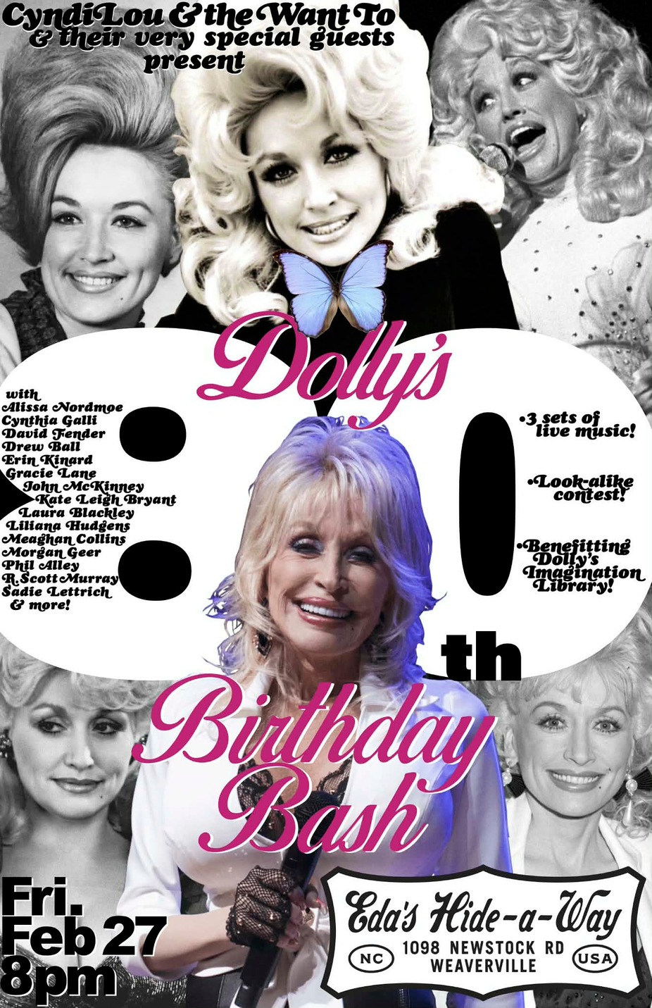 We will always love Dolly and we’re back at Eda's on Fri. Feb 27 to celebrate her 80th birthday! Hosted once again by CyndiLou & the Want To with special guests including Alissa Nordmoe (Nordmoe & the Rodeo), Erin Kinard (Rooster), Gracie Lane, Kate Bryant (Cactus Kate & the Pricks), Laura Blackley (Old Chevrolette Set), Liliana Hudgens, Meaghan Collins (Sparkle Mountain), Sadie Lettrich and more! Our all-star band includes Phil Alley (Heavenly Vipers) on guitar, Morgan Geer (Drunken Prayer) on bass, and John McKinney on keyboards. 3 sets of live music, a look-alike contest, and a portion of proceeds benefitting Buncombe County Partnership for Children, the local chapter of Dolly’s Imagination Library!