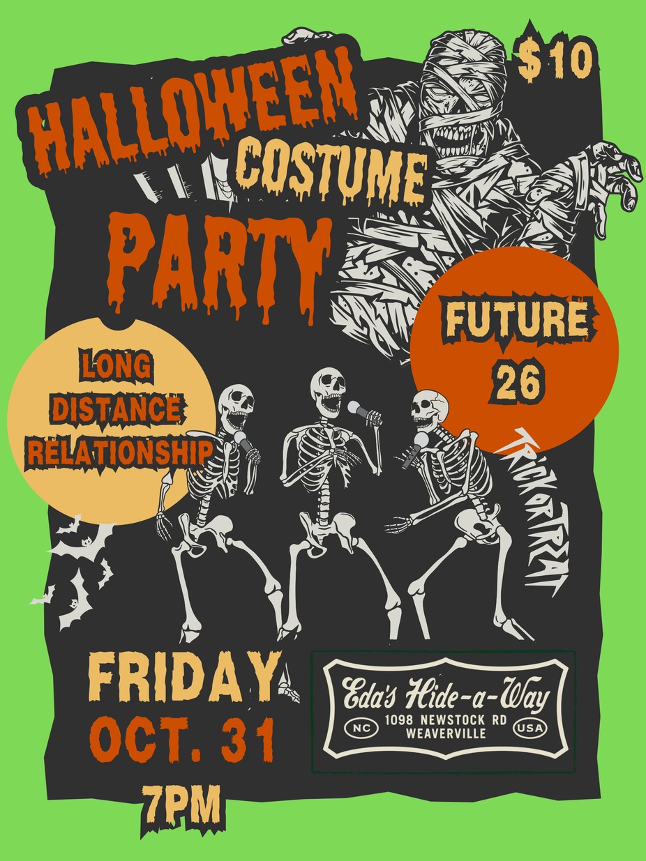 As their name suggests, MONSTER WAVE plays exactly that: an eerie instrumental surf-rock sound that could be the soundtrack for a haunted tiki bar. They have go-go grooves, melodic guitars and a rhythmic beat that will get you twistin' and stompin' into the night! According to Ox-Fanzine, its "as if Dick Dale were setting a few episodes of The Munsters to music". So grab your favorite ghoul and get ready to dance, because remember: sitting still is forbidden! THE BIG SKY is Asheville’s newest instrumental guitar band. Fusing "spaghetti western" vibes with psychedelic surf tunes and Chicago-style post-rock bands like Tortoise and Brokeback, the rock quartet wants every song to sound different than the last. While there is little improvisation, the songs themselves capture the energy and freedom of a live jam, wherein double guitar parts and heavy drums could be mistaken for peak Allman Brothers or Hendrix-style sonic exploration. As AltSceneAVL writes, "The Big Sky is ultimately a feedback loop between squaring the sound and feel of improvisation with composed music.”