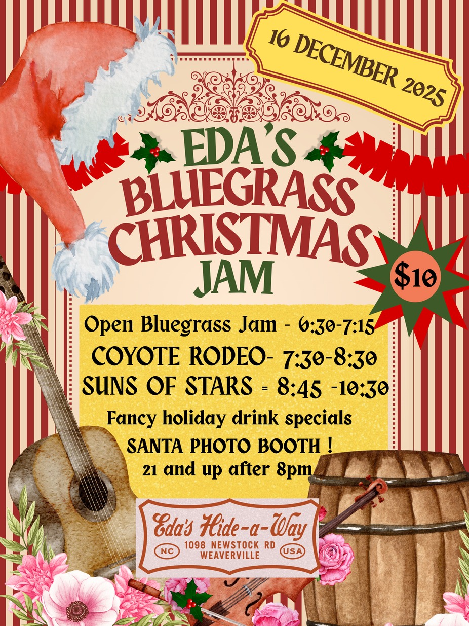 New night! Open Mic Night moves to Sunday night. Your voice. Your stage. Come take the spotlight at Eda's Hide-A-Way and show us what you got. All welcome, share your talent in a supportive and welcoming environment. Sign up at 6pm